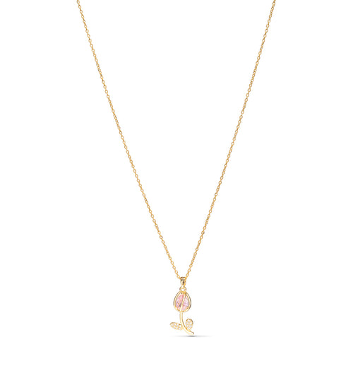 Embrace timeless elegance with the Golden Rose Blossom Pendant Necklace. This exquisite piece features a delicate rose design, adorned with a sparkling pink gemstone as the...